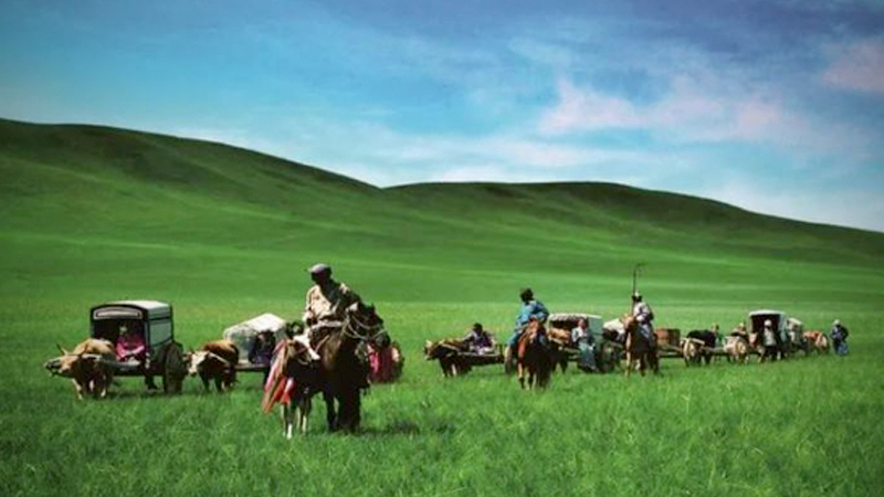 Summer in Xilingol is a season of green fields and cool breeze. The vast grassland is infinitely green and in contrast to the blue waters of the fast-flowing river. With the blue sky covered with soft white clouds, flocks of cattle and sheep can be seen leisurely foraging and running.