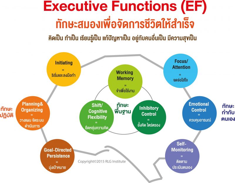 ผศ.ดร.ปนัดดา ธนเศรษฐกร นักวิชาการและนักวิจัย จากสถาบันแห่งชาติเพื่อการพัฒนาเด็กและครอบครัว มหาวิทยาลัยมหิดล อธิบายว่า Executive Functions (EF) คือความสามารถระดับสูงของสมองมนุษย์ที่ใช้การควบคุมความคิด อารมณ์ และการกระทำ เพื่อไปให้ถึงเป้าหมาย เป็นกระบวนการของสมองที่อยู่ในสมองส่วนหน้าของมนุษย์เมื่อแรกเกิดยังเติบโตไม่เต็มที่ งานวิจัยระยะยาวของมหาวิทยาลัยฮาร์วาร์ด ระบุว่า อัตราการเติบโตสูงสุดของ EF อยู่ในช่วงปฐมวัย หรืออายุ 3-6 ปี เด็กจะมี EF แข็งแรงได้จึงต้องผ่านการฝึกฝน บ่มเพาะได้รับโอกาสเรียนรู้จากการลงมือทำ ให้เด็กมีประสบการณ์ตรงที่หลากหลายมากๆ องค์ประกอบที่สำคัญที่สุดอันเป็นฐานของการพัฒนาEF คือการได้รับความรัก ความอบอุ่นผูกพันจากพ่อแม่ ผู้ใหญ่ในครอบครัว รวมถึงได้รับการจัดประสบการณ์เรียนรู้ทั้งในสถานศึกษาสำหรับเด็กเล็ก ที่บ้าน และในชุมชนที่เหมาะสมอย่างต่อเนื่องอีกด้วย