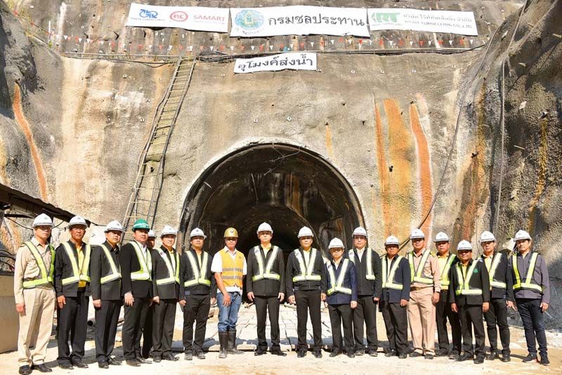 “กังวลในส่วนอุโมงค์ส่งน้ำ 2 ฝั่งที่ยังไม่เชื่อมกันจากความล่าช้า ซึ่งกรมชลประทานชี้แจงว่าเหตุล่าช้าของการเจาะอุโมงค์ 2 ช่วง จากธรณีวิทยา และสภาพดิน บางช่วงจุดเจาะไปเจอถ้ำทำให้เครื่องหัวเจาะทำงานไม่ได้ ต้องมีการปรับหัวเจาะ บางวันแผนการเจาะได้ 5 เมตร ก็จะเหลือ 2-3 เมตรต่อวัน ดังนั้นเหลือ 2 ปี จากนี้จะต้องเร่งรัด และรายงานมาถึงผมให้ทราบทุกระยะ หากติดปัญหาอะไร ผมจะสั่งเร่งแก้ไขทันที เพิ่มกำลังคน เครื่องมือ เพราะงานนี้ต้องให้เสร็จทันสิ้นสุดสัญญาปี 2564 ถ้าบริษัทใดผิดสัญญาผมไม่เอาไว้ ยกเลิกแน่นอน ไม่ได้ขู่จะทำจริงเพราะยิ่งล่าช้า ประชาชนจะเสียโอกาสในการแก้ไขความเดือดร้อน และการใช้งบประมาณแผ่นดินต้องให้เกิดประโยชน์สูงสุดแก่ประชาชนทุกพื้นที่” นายเฉลิมชัย กล่าว