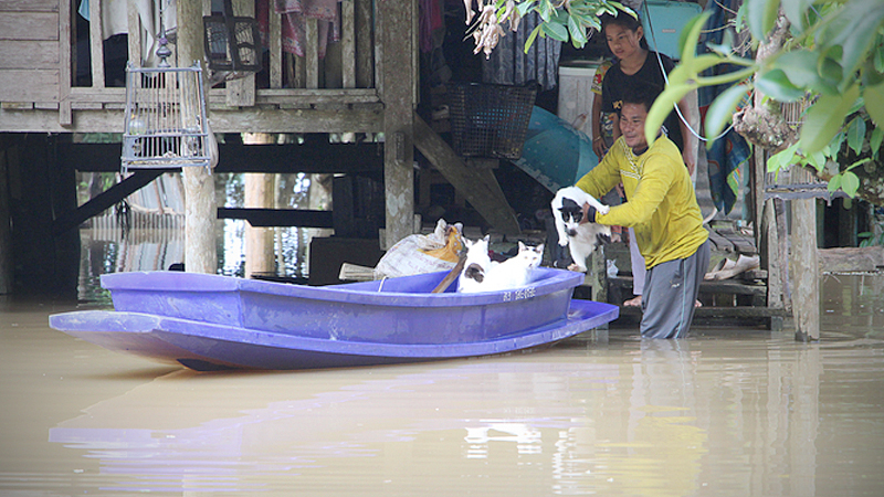 Yala Governor Chaiyasit Panichpong said on Thursday (December 19) that preliminary reports from local officials revealed that more than 5,000 residents of 1,120 households in Yala province were affected by the floods, with approximately 50 rai of farmland being damaged. Three roads were cut off and several farm animals perished or went missing.