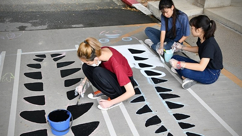 Some 300 students from King Mongkut’s Institute of Technology Ladkrabang (KMITL) have repainted and added creative designs to 18 zebra crossings at the institute in a bid to encourage staff, students and members of the public to pay more attention to traffic rules and road safety.