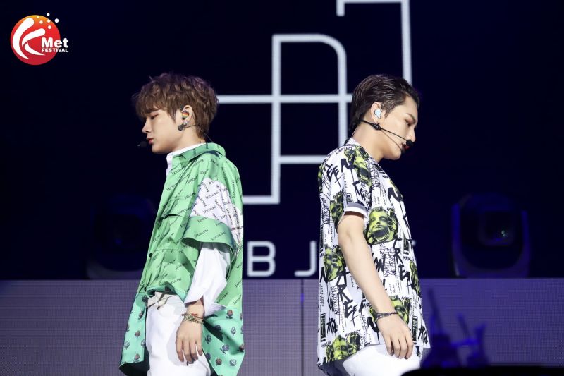 แล้วมากระหน่ำความฟินกันต่อกับคอนเสิร์ตแต็มรูปแบบในฮอลล์ โดย“เจบีเจไนน์ไฟว์” (JBJ95)2 หนุ่ม คู่หูดูโอ้ซังกยุนและ เคนตะ ได้แสดงวงแรก เปิดตัวด้วยเพลง Awakeก่อนจะทักทายแฟนคลับชาวไทย “สวัสดีครับ ผมเคนตะครับ…สวัสดีครับ ผมซังกยุนครับ บรรยากาศในฮอลล์ดีมากและร้อนแรงมากเลยครับ มีเพลงไหนที่ทุกคนร้องได้ก็ร้องตามกันด้วยนะครับ”แล้วต่อด้วยเพลงUnrealที่ท่าเต้นน่ารักเรียกรอยยิ้มกันไป ก่อนจะเรียกเสียงกรี๊ดกันอีกเมื่อซังกยุน อ้อนจั๊กกุงไทยว่า“รักนะจุ๊บจุ๊บ”ตามด้วยเคนตะชมจั๊กกุงว่า “น่ารัก”แถมยังมีเล่นเกมพูดภาษาไทยแบบรัวๆ“รอนานไหมที่รัก” “กุมใจพรี่” “ก็มาดิครับ”ก็เลยได้กรี๊ดสนั่นแบบรัวๆ…ก่อนจะโชว์ปิดท้าย 3 เพลงรวดMilky Way, SPARKและWho I am