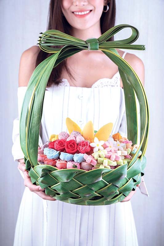 นอกจากนี้ยังสามารถเลือกกระเช้าในสไตลส์ของคุณ กับกล่องไม้ไผ่สาน ที่มีทั้งไซส์ เล็ก กลาง ใหญ่ ให้คุณได้เลือก พร้อมเลือกขนมไทยมงคลในแบบของคุณ กว่า 15 ชนิด อาทิ จ่ามงกุฏ, กระเช้าสีดา, ฝอยทองกรอบ, เสน่ห์จันทร์,สัมปันนี และอาลัวชาววัง