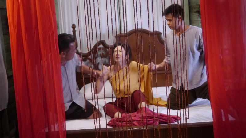 ฉากนี้บทหนักที่ต้องโชว์ฝีมือการแสดงตกอยู่ที่ “ยุ้ย-จีรนันท์” แต่ด้วยฝีมือขั้นเทพทำให้ถ่ายทำไปได้ผ่านฉลุย แต่ที่หนักของจริงเห็นจะเป็น “เอก-รังสิโรจน์” เพราะต้องอุ้มสาว “ยุ้ย” ลงมาจากผ้าที่แขวนคอ ทางด้านเถ้าแก่เต็ง และทีมแมงดาลูกน้อง ที่ต้องโดนแรงเหวี่ยงสู้ยิบตาของ “ยุ้ย” ก็บอกได้คำเดียวว่า จุก!