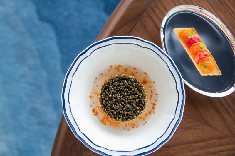 Opening menu ประสบการณ์ความอร่อยเหนือระดับ ซึ่งจะมีการเปลี่ยนแปลงไปตามฤดูกาล อาทิ เมนูเรียกน้ำย่อย ได้แก่ หอยเชลล์จากฮอกไกโดเสิร์ฟพร้อมเฮิร์บ ผักสลัด และน้ำสลัดทรัฟเฟิล ซึ่งเป็นส่วนผสมที่ลงตัวของเฮิร์บและสลัดที่สะท้อนแนวรสนิยมของลูกค้าชาวไทย ด้วยการเลือกใช้วัตถุดิบจากท้องถิ่น เป็นการผสมผสานอย่างลงตัวระหว่างผลิตผลที่ดีที่สุดของไทยและของโลก และ เมนูเนื้อปู เสิร์ฟพร้อมวุ้นน้ำมะเขือเทศและคาเวียร์ทอง ใช้มะเขือเทศ 3 ชนิด พร้อมด้วยวุ้นน้ำมะเขือเทศที่ใช้เวลาในการทำนานกว่า 12 ชั่วโมง มีกลิ่นหอมชวนรับประทาน เคล้าเครื่องเทศและพริก ประดับด้วยไข่ปลาคาเวียร์ทองอันเลอค่า