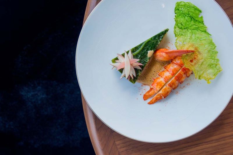 ส่วนอาหารจานหลักหลายรายการ เชฟเลือกนำเสนอ ล็อบสเตอร์ย่าง กะหล่ำปลีซาวอย และแอปเปิ้ลกาล่า ซึ่งเชฟ กล่าวว่า อาหารจานนี้เป็นตัวแทนที่สมบูรณ์แบบของสิ่งที่เราทำ นั่นคือ เรานำสูตรอาหารฝรั่งเศสแบบดั้งเดิมมาปรับให้ทันสมัยมากยิ่งขึ้น เรานำเสนอล็อบสเตอร์ย่างที่ผ่านการทำให้สุกในน้ำก่อนแล้วจึงนำมาย่างด้วยไฟอ่อนๆ เสิร์ฟพร้อมกับซอส Homardine เบาๆ ซึ่งจะเป็นที่ชื่นชอบของลูกค้าชาวไทย โดยมีส่วนผสมของน้ำแอปเปิ้ลเล็กน้อยที่ให้ความสดชื่นกำลังดี ในขณะที่เนื้อของล็อบสเตอร์จะช่วยเติมเต็มความสมบูรณ์แบบให้ครบทุกมิติ และเมนูนี้เรานำเข้ากะหล่ำปลีซาวอยซึ่งเป็นที่ต้องการอย่างมาก เนื่องจากเป็นไฮไลท์สำคัญที่มีเฉพาะฤดูกาลเพียงไม่กี่เดือนในช่วงฤดูหนาวที่ประเทศฝรั่งเศส