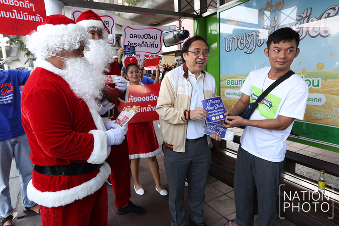 Thai Health Promotion Foundation’s chief executive officer Doctor Supreda Adulyanon, together with officials from related organisations, held a campaign against drinking during the upcoming New Year holidays, at Victory Monument today (December 25).