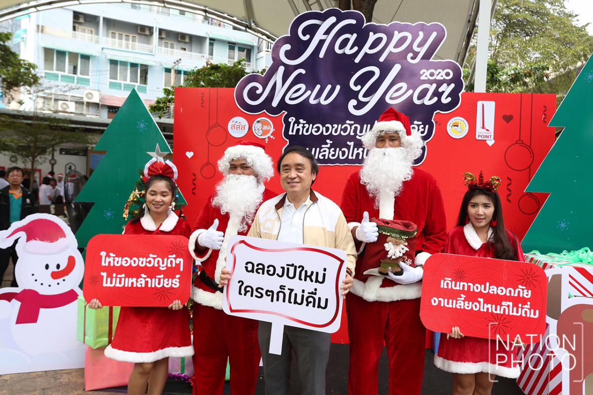 Thai Health Promotion Foundation’s chief executive officer Doctor Supreda Adulyanon, together with officials from related organisations, held a campaign against drinking during the upcoming New Year holidays, at Victory Monument today (December 25).