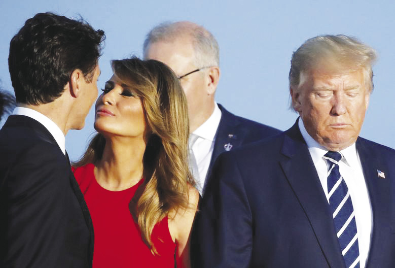 เชอะ : ประธานาธิบดีโดนัลด์ ทรัมป์ คงรู้สึกแบบนั้น จนถึงกับทนมองไม่ได้กับภาพบาดตา ที่นางเมลาเนีย ทรัมป์ สตรีหมายเลขหนึ่ง กำลังจุมพิตกับนายกรัฐมนตรีจัสติน ทรูโด ผู้นำรูปหล่อแห่งแคนาดา ก่อนการถ่ายภาพหมู่ของบรรดาผู้นำและคู่สมรส ในการประชุมสุดยอดผู้นำจี 7 ที่เมืองบีอาริตซ์ ประเทศฝรั่งเศส เมื่อเดือนสิงหาคม