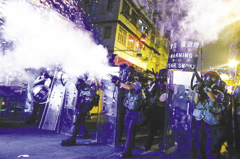 ยิงใส่ : ตำรวจปราบจลาจลฮ่องกงยิงแก๊สน้ำตาเข้าใส่กลุ่มผู้ประท้วงต่อต้านรัฐบาลและเรียกร้องประชาธิปไตยในฮ่องกง ระหว่างการปะทะกันในย่านชามชุ่ยโป เมื่อเดือนสิงหาคม ไม่มีใครคาดคิดว่าการประท้วงจะดำเนินต่อเนื่องมาจนถึงตอนนี้