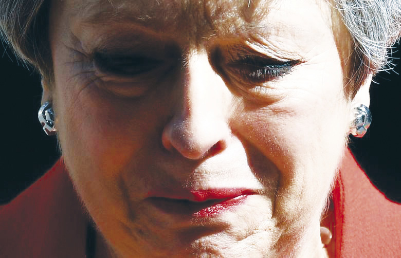 ร่ำไห้ : นายกรัฐมนตรีเทเรซา เมย์ หลั่งน้ำตาร่ำไห้ระหว่างแถลงลาออกจากตำแหน่งผู้นำพรรคอนุรักษ์นิยมของอังกฤษ เมื่อเดือนพฤษภาคม จากวิกฤติเรื่องเบร็กซิท ส่งผลให้ต้องลงจากตำแหน่งผู้นำรัฐบาลอังกฤษไปโดยปริยาย
