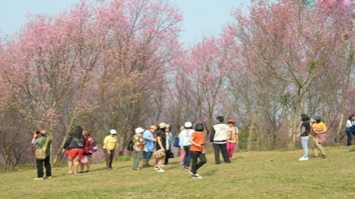 The official invited tourists to enjoy the beauty of wild Himalayan cherry blossoms and the cold weather of 10-15 degrees Celsius at Khun Sathan National Park in Nan.