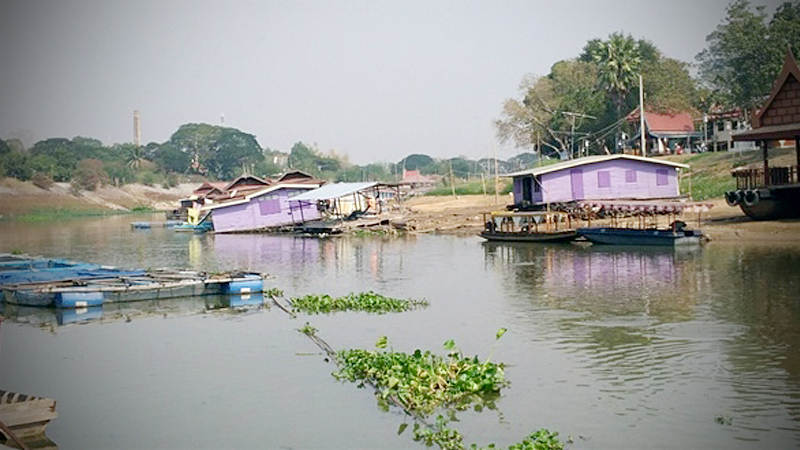 A group of Chao Pae or fish farmers living on rafts in Uthai Thani sought help from local fishery officials today (December 2) as the decreasing water level in Sakaekrang River has landed their vessels on clay dunes.