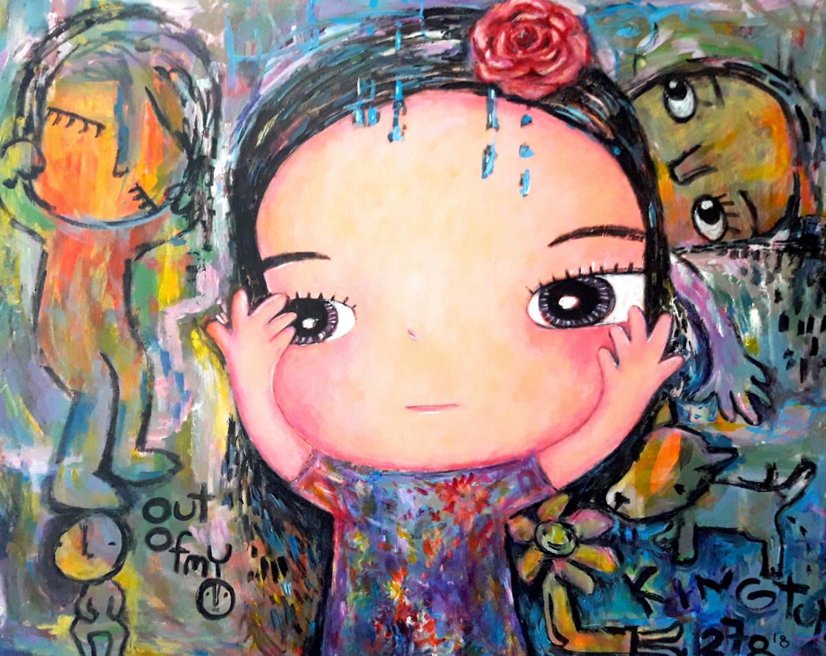 “Again” will feature Kingtun’s latest acrylic paintings that depict her personal experiences with humour, gentle sarcasm and a charming innocence, bringing viewers a warm and positive energy.