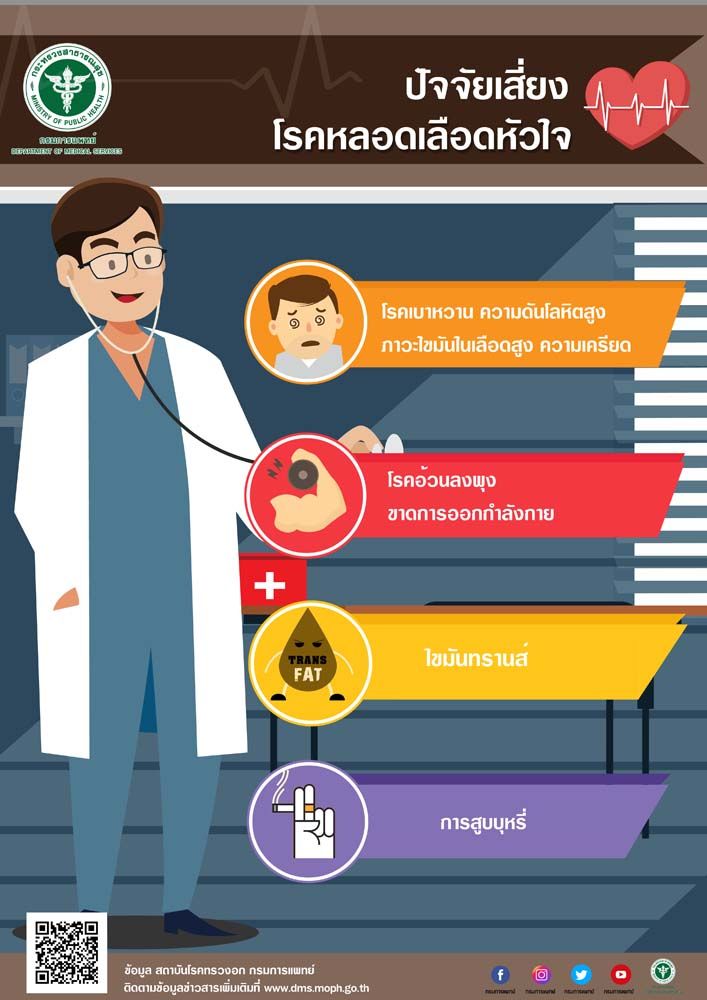 กรมการแพทย์ โดยสถาบันโรคทรวงอก เตือนประชาชนควรตระหนักถึงปัจจัยเสี่ยงต่อโรคหลอดเลือดหัวใจ หากพบอาการบ่งชี้อย่าชะล่าใจ หากไม่ได้รับการรักษาเร่งด่วนอาจเสียชีวิตได้