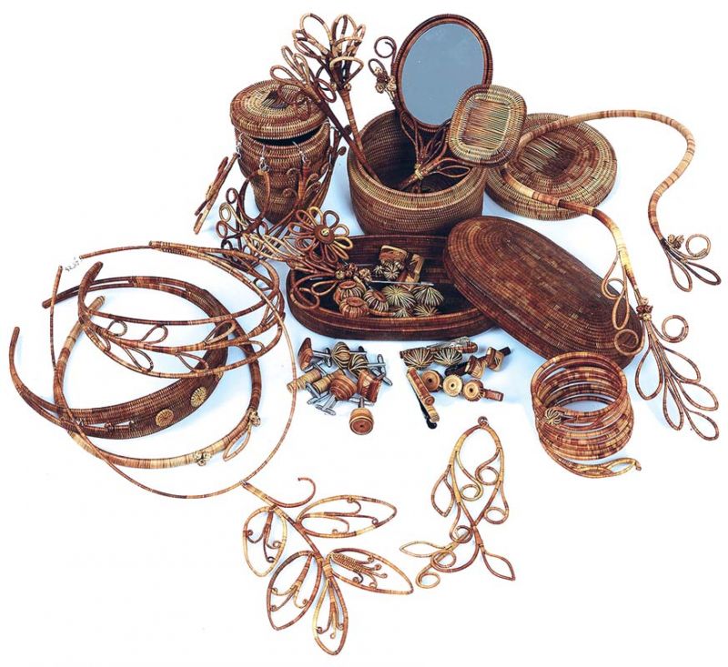 และ คอลเลกชันเครื่องประดับจักสานสไตล์โบฮีเมียน ลายใบไม้ 3 สี จากชุมชนบ้านดาฮง จ.นราธิวาส กับการพลิกโฉมงานจักสานย่านลิเภา มาเป็นเครื่องประดับรูปแบบทันสมัย โดย ได้รับแรงบันดาลใจการสร้างสรรค์ผลงานมาจากชื่อของหมู่บ้านดาฮง ซึ่งหมายถึงใบไม้ โดยใช้สีธรรมชาติของย่านลิเภาที่มี 3 สี คือสีน้ำตาลเข้มแทนสีใบไม้แก่จัด สีเหลืองแทนใบไม้ที่แก่พอดี และสีเขียวแทนใบอ่อน ซึ่งเกิดจากการสังเกตพื้นที่บริเวณหมู่บ้านที่มีภูเขา ป่าไม้ ลำธาร และต้นไม้นานาชนิด โดยคอลเลกชันนี้ประกอบด้วยสร้อยคอ จี้สร้อยคอ ต่างหู กำไล ปิ่นปักผม ที่คาดผม เข็มกลัด ที่หนีบเนคไท เป็นต้น