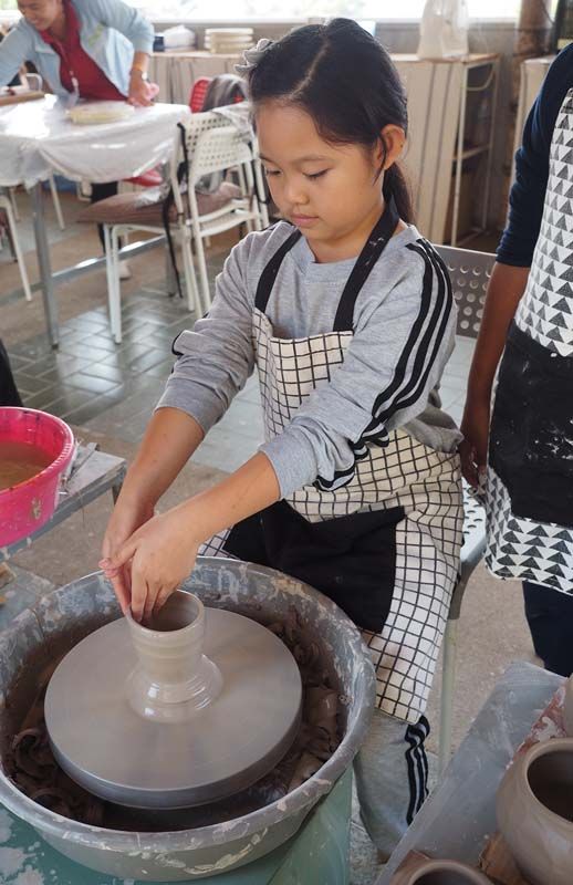 ต่อด้วยกิจกรรมเอาใจน้องๆ ที่ชอบงานอาร์ตต้องการปลดปล่อยไอเดียกับ กิจกรรมเวิร์กช็อปงานมือ ประดิษฐ์ตุ๊กตาจากมะเขือการ์ตูน สีเหลืองสด หน้าตาน่ารัก และจัดสวนถาด สวนขวดแก้ว ให้เด็กๆ ได้โชว์ความคิดสร้างสรรค์ทางศิลปะอย่างไร้ขีดจำกัด อยู่ในบริเวณซุ้มเกษตร ที่มีพี่ๆ เจ้าหน้าที่คอยช่วยแนะนำวิธีทำอย่างเป็นกันเอง อีกทั้ง ยังมีการสอน เพ้นท์กระเป๋าผ้า ทำการ์ดจากวัสดุธรรมชาติ ตลอดจนทดลองปั้นเซรามิก ที่บริเวณ เวิร์กช็อป งานมือ(Art & Craft Workshops) หรือหากเด็กคนไหนชอบเรื่องสิ่งแวดล้อม สามารถแวะชมบริเวณ Eco House ปั๊มจานใบตอง จากนวัตกรรมเครื่องปั๊มจานประดิษฐ์เครื่องจิ๋วแต่แจ๋ว …ทำแล้วสามารถนำถ้วยและจานใบตองกลับไปใช้ที่บ้านได้จริง