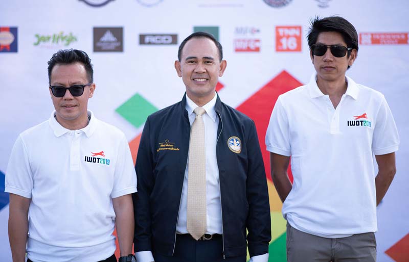 เขมพล อุ้ยตยะกุล เลขานุการ รมว.กระทรวงการท่องเที่ยวและกีฬา ประธานเปิดการแข่งขัน พร้อมด้วย สถิตย์พร โสภาเจริญวัฒนะ ประธานจัดการแข่งขันฯ และ กนก บุญย้อยหยัด