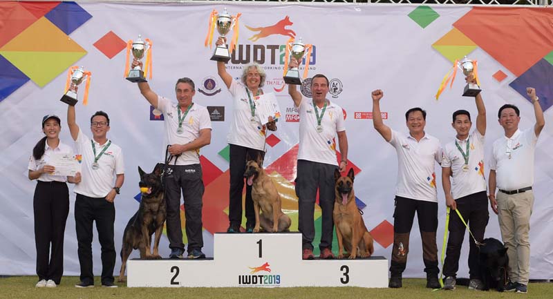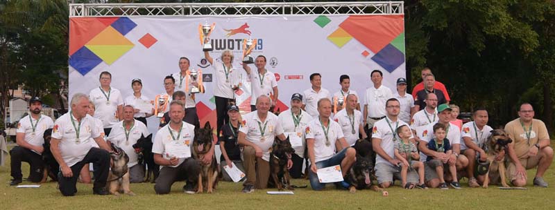 (จากซ้าย) อนุตตรีย์ แตงมณี, สถิตย์พร โสภาเจริญวัฒนะ ตัวแทนทีมชาติไทย รองชนะเลิศอันดับที่ 4, Mr.Pierre Lamarieกับสุนัข Gringo ตัวแทนจากประเทศสเปน รองชนะเลิศอันดับที่ 1, Mrs.Petra Angela กับสุนัขรู้ใจ ตัวแทนจากประเทศเยอรมนี รางวัลชนะเลิศ, Mr.Theodor Sporrer กับสุนัขคู่ใจ ตัวแทนจากประเทศเยอรมนี รองชนะเลิศ อันดับที่ 2,Mr. Michael Lee ครูผู้ฝึกสอนทีมชาติไทย, ปีเฉลิม ลาดจันทึกตัวแทนทีมชาติไทย และสุนัข “เคนโซ” ตัวแทนทีมชาติไทยรองชนะเลิศอันดับที่ 3, ศุภกฤต อัศวชัยพร