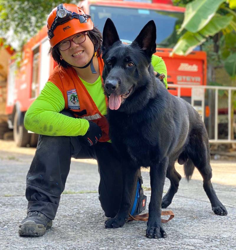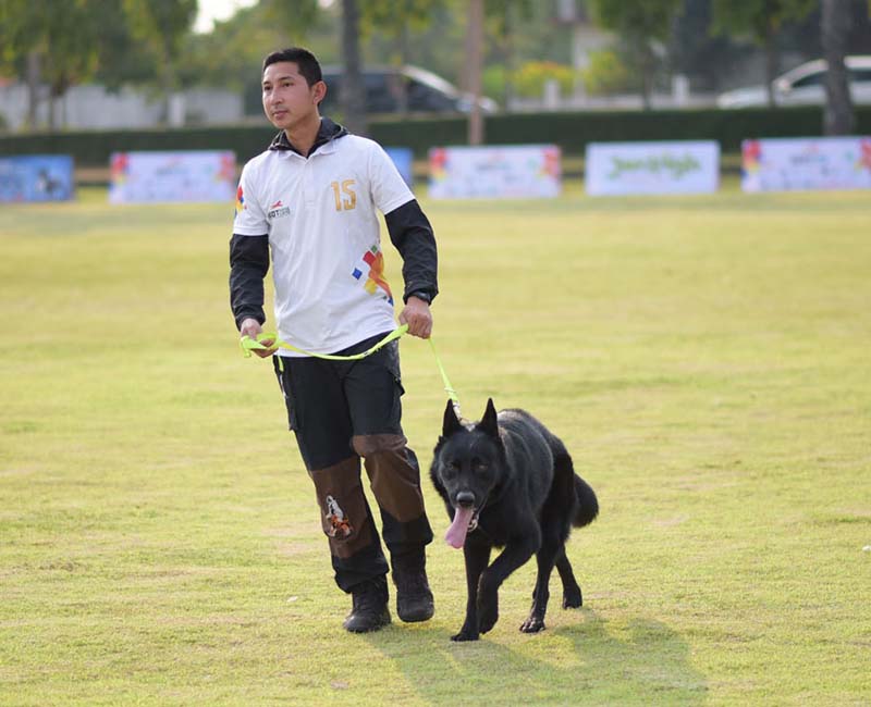 ปีเฉลิม ลาดจันทึก ตัวแทนทีมชาติไทยและสุนัข “เคนโซ” ตัวแทนทีมชาติไทย ขณะแข่งขันคว้ารางวัลรองชนะเลิศอันดับที่ 3