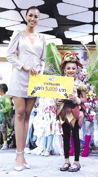 สำหรับหนูน้อยที่คว้ารางวัลชนะเลิศอันดับที่ 1 ได้แก่ เด็กหญิงฐิตารีย์ โสมหิรัญกุล หรือ น้องโมริจัง อายุ 8 ปี จากโรงเรียนอนุบาลชุมชนบางบ่อที่มาในคอนเซ็ปต์ ชุดรักษ์โลกร้อน ได้นำเอาส่วนประกอบของกล้วยไม่ว่าจะเป็นใบ ลำตัน หัวปลี มาประดับตกแต่งให้เป็นชุดแสนน่ารัก โดยมีคุณแม่เป็นผู้สนับสนุน ซึ่งน้องโมริจังได้บอกที่มาของชุดนี้ว่า “หนูเป็นคนชอบทานกล้วยค่ะ พ่อกับแม่ปลูกกล้วยไว้เต็มหลังบ้าน หนูกับแม่เลยช่วยกันคิดออกแบบชุดประกวด แม่บอกให้เอาวัสดุธรรมชาติที่บ้านเรามี ก็เลยเป็นที่มาของชุดนี้ค่ะ และหนูอยากให้ทุกคนช่วยกันดูแลต้นไม้รอบๆ ตัวเหมือนกับที่บ้านของหนูนะคะ” ด้านของหนูน้อยที่คว้า รางวัลชนะเลิศอันดับที่ 2 ได้แก่ เด็กหญิงชมพูนุช ศรุตาเดโชกุล หรือน้องบีเฟิร์ส อายุ 9 ขวบ จากโรงเรียนกรพิทักษ์ศึกษา เล่าถึงที่มาของชุดประกวดในวันนี้ว่า “หนูเป็นคนชอบดอกไม้และธรรมชาติค่ะ คุณแม่เลยชวนคิดและออกแบบชุดว่าควรเป็นแบบไหนดี เลยได้มาเป็นชุดดอกไม้บ่งบอกตัวเราว่าเรารักธรรมชาติ และทำให้ดูสดชื่นอีกด้วยค่ะ”