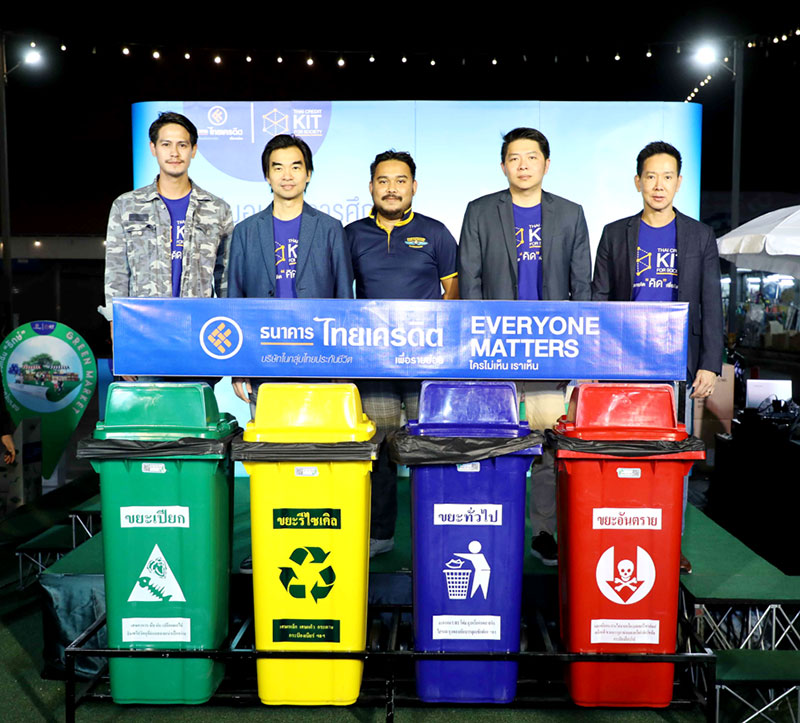 นัฐพร นาคจู (กลาง) รับมอบถังคัดแยกขยะ จากธนาคารไทยเครดิตฯ