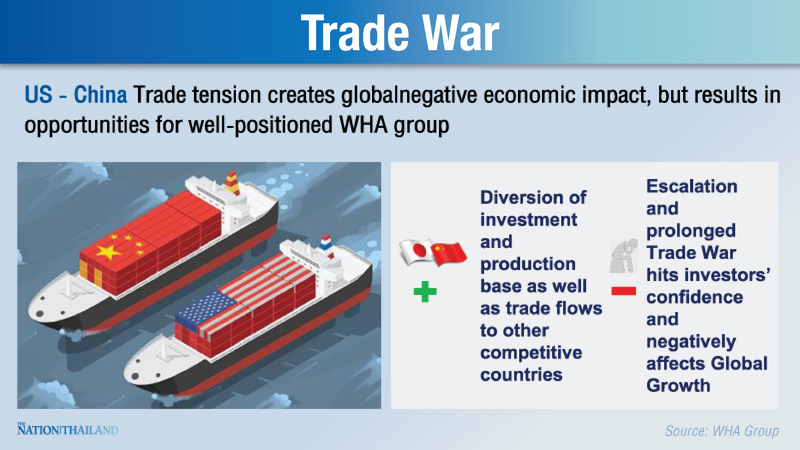 WHA, a major industrial park operator in Thailand and Vietnam, has reaped much benefits from the recent wave of production base relocation from China to Thailand due to the US-China trade war, rising labour costs and regulatory issues, said Jareeporn Jarukornsakul, chairman and Group CEO of WHA Corporation Plc.