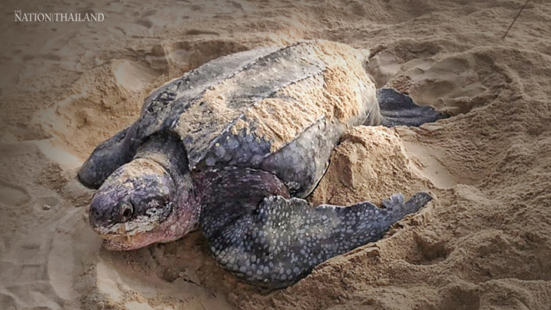 Park officials and staff of the Surveillance and Monitoring Centre for Leatherback Turtles on Thursday gently moved 85 healthy eggs from a place on Hat Thai Mueang Beach where an adult female was seen nesting – the first spawning of the season – to another sandy locale near the park office.