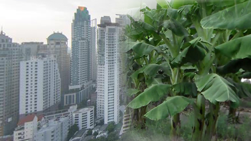Recently, a land measuring 3 rai on Naradhiwat-Rajanagarindra Road was found to be used for growing bananas. The land is just about 100 metres from Empire Tower, one of the skyscrapers in Bangkok.