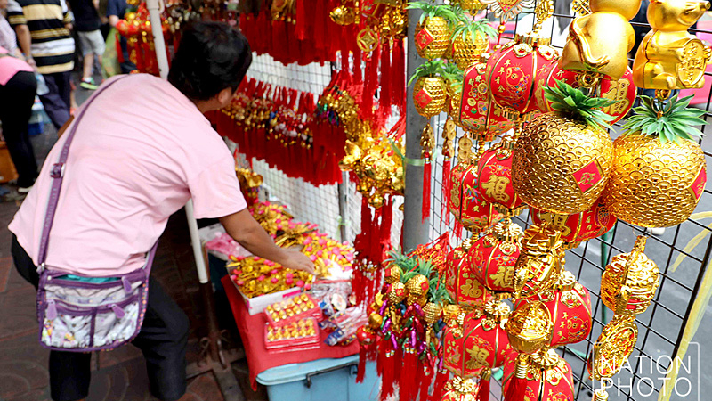 Yaowarat Road is bustling with activity as Thai people of Chinese ancestry prepare themselves to celebrate the Chinese New Year. Thais and foreign tourists can be seen buying fruits, new clothes and lanterns to decorate their houses that are the symbols of good fortune.