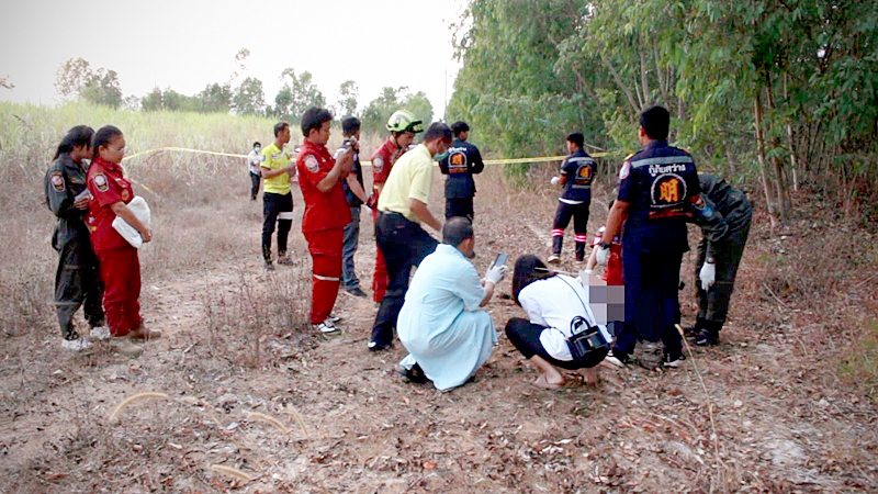 Songkran Booddeekam, owner of the sugarcane farm, said he detected a foul smell while harvesting sugarcane and decided to search the area. He then came across what looked like a corpse before calling the police.