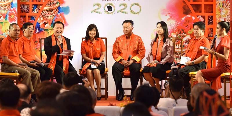 ฐาปน สิริวัฒนภักดี ประธาน กก.จัดงานตรุษจีนเยาวราช ประจำปี 2563 พร้อมด้วย วิศิษฏ์ ลิ้มประนะ ประธานฝ่ายเฝ้าฯรับเสด็จ,ยุทธศักดิ์ สุภสร ผู้ว่าการททท., พินิจ กาญจนชูศักดิ์ ประธานประชาคมเขตสัมพันธวงศ์, ฐาปนีย์ เกียรติไพบูลย์ จาก ททท, ประวิช สุขุม ผอ.สำนักสื่อสารองค์กร บมจ.ไทยเบฟเวอเรจ และแขกผู้มีเกียรติ