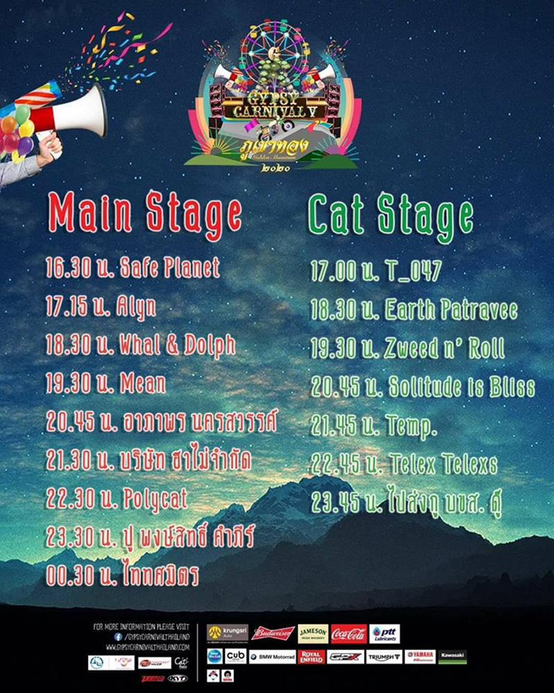ที่สำคัญปีนี้เราจะมันส์กันเต็มอิ่มกว่าเดิมเพราะนี่คือครั้งแรกที่ Gypsy Carnival ร่วมมือกับ CAT Radio เพิ่มอีกหนึ่งเวทีให้สาวกอินดี้…