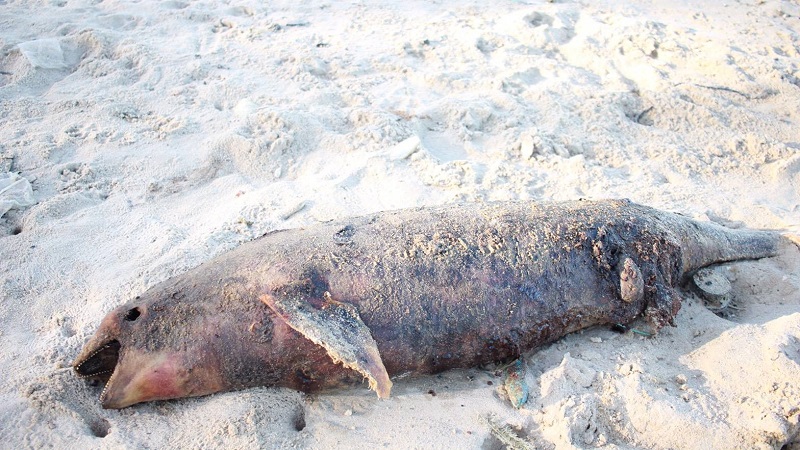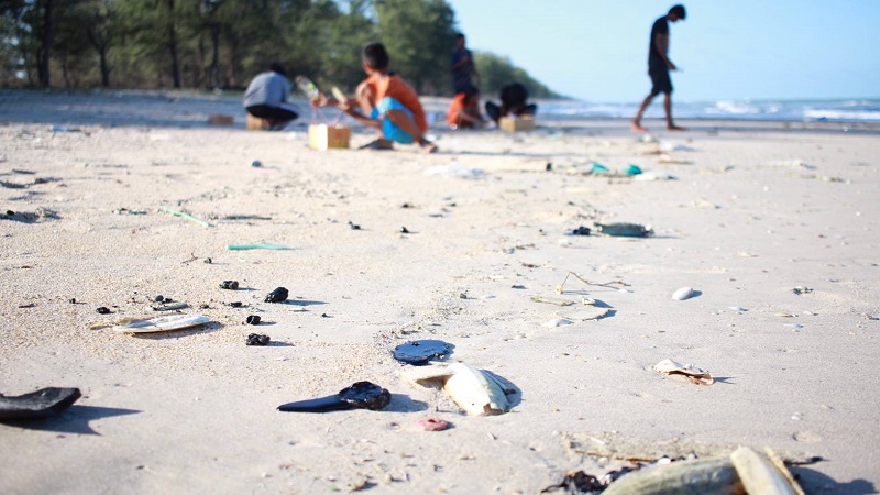 Dead fish smeared with oil found on beach in Songkhla