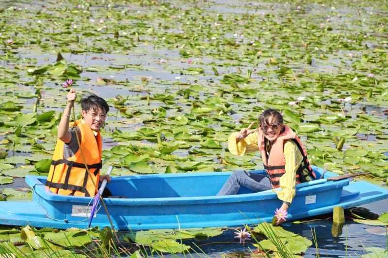 “คุณน้ำผึ้ง-ลัก-ยม” ตะลุยพรุบัว ลงเรือน้อยลอยวน ตระการตาส่องควายน้ำ