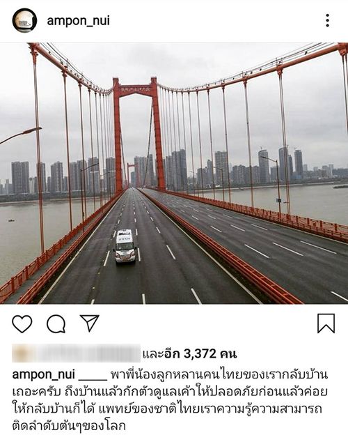 ด้าน หนุ่ย อำพล ลำพูน นักร้องร็อกชาวไทยชื่อดัง ตำนานมือขวา แห่งวงไมโคร โพสต์ภาพและแคปชั่น ผ่านอินสตาแกรมเรียกร้องให้ทางการไทย พาคนไทยที่อยู่ในพื้นที่เสี่ยงจากเชื้อไวรัสโรโคน่า ในเมืองอู่ฮั่น มณฑลหูเป่ย์ สาธารณรัฐประชาชนจีน กลับมายังบ้านเกิดโดยเร็ว ซึ่งมีแฟนคลับ และผู้ติดตาม เข้าไปแสดงความคิดเห็นอย่างคับคั่ง โดยหนุ่ย อำพล โพสต์ว่า