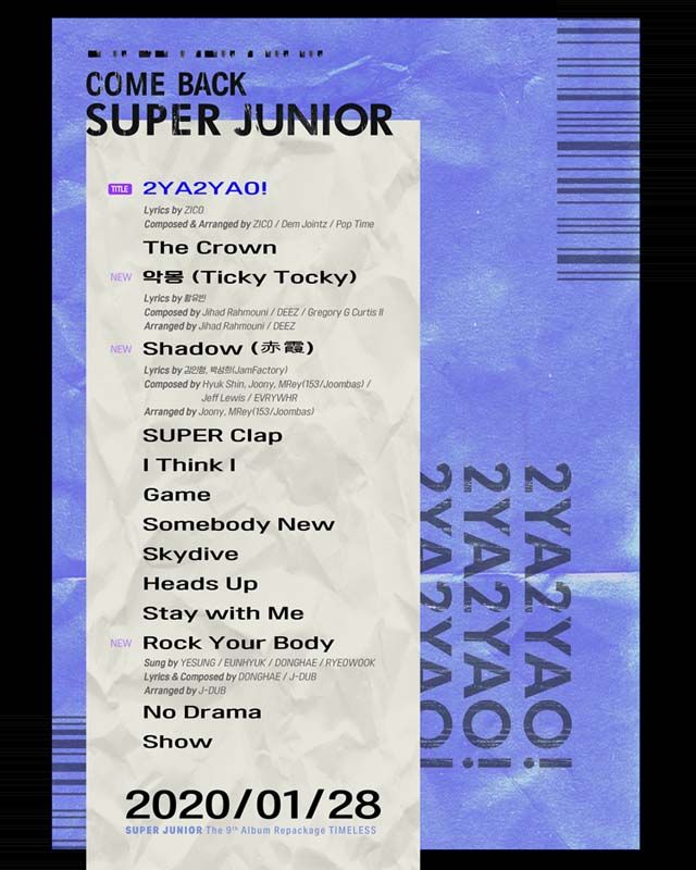 ราชาฮันรยูระดับโลก ‘SUPER JUNIOR’ (ซูเปอร์ จูเนียร์) เพิ่มความท้าทายให้น่าติดตามทุกครั้งที่คัมแบ็ค และล่าสุดคัมแบ็คพร้อมอัลบั้มรีแพ็คเกจชุดที่ 9 ‘TIMELESS’ (ไทม์เลส) อัลบั้มปิดท้ายซีรีย์ ‘TIME’ หลังจากที่พวกเขาได้เคยปล่อยอัลบั้มเต็มชุดที่ 9 ‘Time_Slip’ ออกมาเมื่อวันที่ 14 ตุลาคมที่ผ่านมา ต่อด้วยอัลบั้มเต็มชุดที่ 9 เวอร์ชั่นพิเศษ ‘TIMELINE’ เมื่อวันที่ 6 พฤศจิกายนที่ผ่านมา
