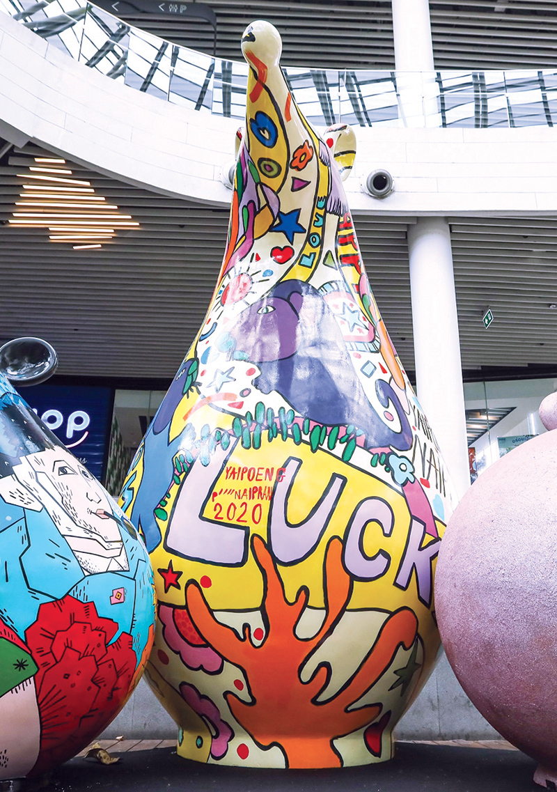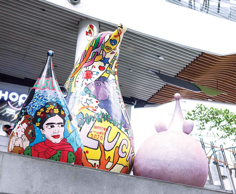 ก้องศักดิ์ พูนผลวัฒนาภรณ์ สร้างสรรค์ประติมากรรมหนู โดยให้มองได้เป็นทั้งหยดน้ำ หรือก้อนเมฆที่มีขา แล้วเพนท์ด้วยสีสเปรย์ และสีอะคริลิก ในโทนสีสดใส สนุก เพื่อเฉลิมฉลองสิ่งดีๆ ที่จะเกิดขึ้นในปีหนูนี้