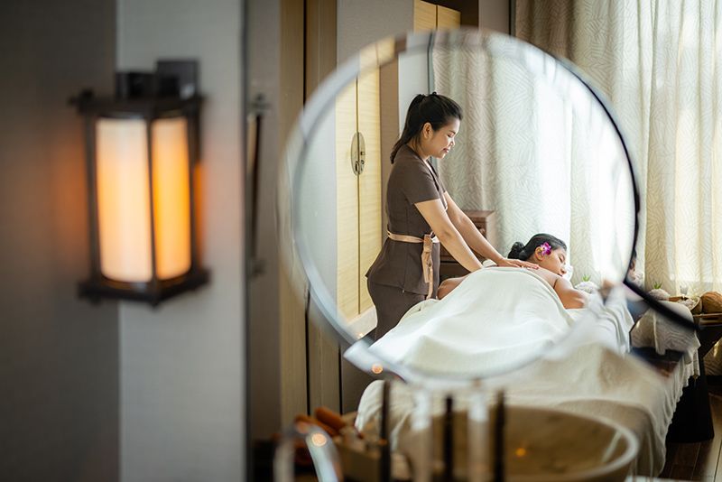เริ่มต้นการทรีทเม้นท์ 30 นาทีแรกด้วยการขัดผิวอย่างอ่อนโยนจากสครับที่มีส่วนผสมของน้ำตาล เกลือยิปซัม (Epsom Salt) และเนื้อมะพร้าวขูดเพื่อทำความสะอาดผิวและผลัดเซลล์ผิวใหม่ เกลือยิปซัม มีคุณสมบัติช่วยผ่อนคลายความเครียดของกล้ามเนื้อระบบประสาทและยังมีส่วนช่วยดึงสารพิษออกจากร่างกาย จากนั้นเทอราพิสผู้เชี่ยวชาญและมากประสบการณ์จะนวดเพื่อผ่อนคลายกล้ามเนื้อทั่วร่างกายโดยใช้น้ำมันมะพร้าวออร์แกนิคที่สกัดจากเนื้อมะพร้าว เป็นเวลา 60 นาทีหรือ 90 นาที น้ำมันมะพร้าวมีคุณสมบัติในการเพิ่มความนุ่มชุ่มชื้นให้แก่ผิวและรักษาอาการผิวไหม้จากการโดนแดดได้เป็นอย่างดี อีกทั้งยังอุดมไปด้วยกรดลอริก (Lauric Acid) และกรดคาไพรลิก (Caprylic Acid) ที่มีคุณสมบัติช่วยต้านการเจริญเติบโตของแบคทีเรียบนผิวหนัง