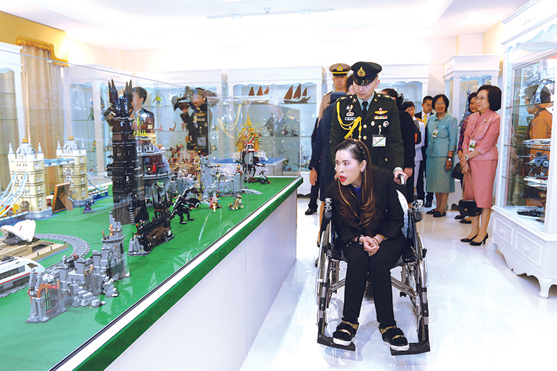 ต่อจากนั้น เสด็จฯ ทอดพระเนตรนิทรรศการเครื่องดนตรี “กู่เจิง” และนิทรรศการการแสดงดนตรีและวัฒนธรรม ชุด “สายสัมพันธ์ สองแผ่นดิน” ซึ่งเป็นสถานที่รวบรวมเรื่องราวของพระอัจฉริยภาพทางด้านดนตรี เครื่องดนตรีแห่งราชสำนักจีน “กู่เจิง” ที่ทรงโปรด และภาพการแสดงดนตรีและวัฒนธรรม ชุด “สายสัมพันธ์ สองแผ่นดิน”ครั้งที่ 1-6 ของสมเด็จเจ้าฟ้าฯกรมพระศรีสวางควัฒน วรขัตติยราชนารี ต่อด้วยห้องจัดแสดง “เลโก้” ที่ทรงใช้เวลาว่างจากพระกรณียกิจให้เป็นประโยชน์ ด้วยทรงใช้พระสมาธิต่อตัวเลโก้ทุกชิ้นด้วยพระองค์เอง ท้ายสุดเสด็จฯ ไปยัง หอศิลป์พิมานทิพย์ (อาคาร 1) เพื่อทรงร่วมงานถวายพระกระยาหารค่ำ แสดงความยินดีในโอกาสทรงสำเร็จการศึกษาหลักสูตรปรัชญาดุษฎีบัณฑิต สาขาวิชาทัศนศิลป์คณะจิตรกรรมประติมากรรม และภาพพิมพ์ มหาวิทยาลัยศิลปากร