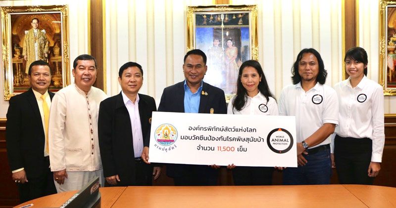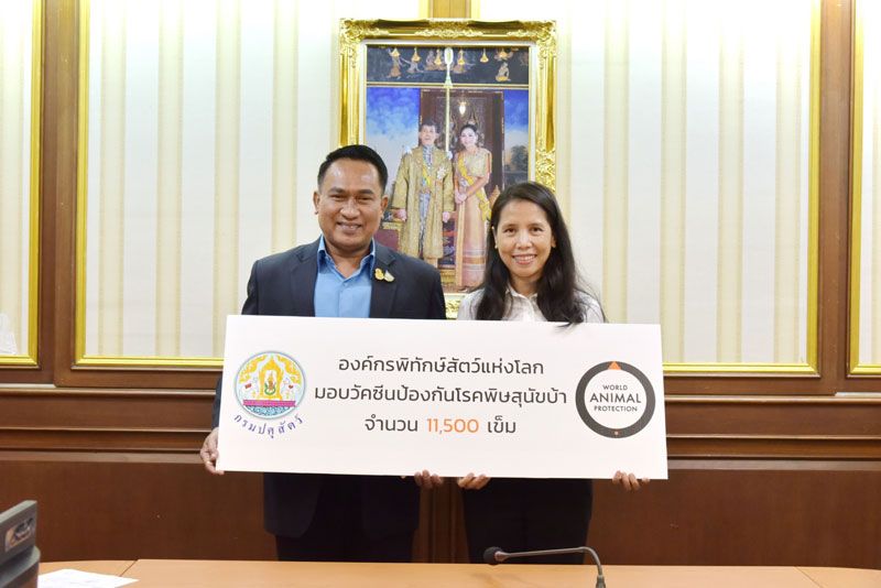 องค์กรพิทักษ์สัตว์แห่งโลก ประเทศไทย ได้มอบวัคซีน 11,500 โด๊ส ช่วยเหลือสุนัขและแมวจรจัดทั่วประเทศ และคู่มือฝึกอบรมอาสาปศุสัตว์ 10,000 เล่ม กิจกรรมนี้เป็นโครงการต่อเนื่องเป็นปีที่สามซึ่งจัดขึ้นภายใต้โครงการ Life Better With Dog ที่ได้รับการสนับสนุนผ่านกิจกรรมสื่อโซเชียล “1 รายชื่อ 1 วัคซีน” และได้มีการรวบรวมวัคซีนทั้งหมดเป็นจำนวน 11,500 โด๊สเพื่อเป็นการรณรงค์ช่วยเหลือสุนัขและแมวจรจัดในประเทศไทยให้ปลอดภัยจากโรคพิษสุนัขบ้า และมีคุณภาพชีวิตที่ดี ปัจจุบันมีหลายประเทศรวมถึงในประเทศไทยยังมีปัญหาในเรื่องโรคพิษสุนัขบ้าระบาด ซึ่งอาจมีสาเหตุจากขาดเอาใจใส่ของผู้เลี้ยงสุนัขและแมว