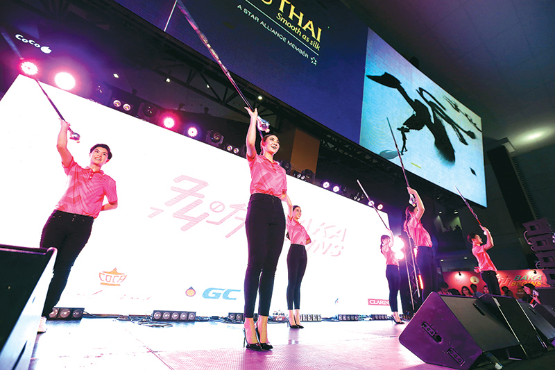ซี-พีรณัฐ : คฑากรมี 9 คนค่ะ ผู้ชาย 4 คน ผู้หญิง 5 คนค่ะแล้วปีนี้มีเพิ่มมาใหม่ด้วยค่ะ คือ คัลเลอร์การ์ด