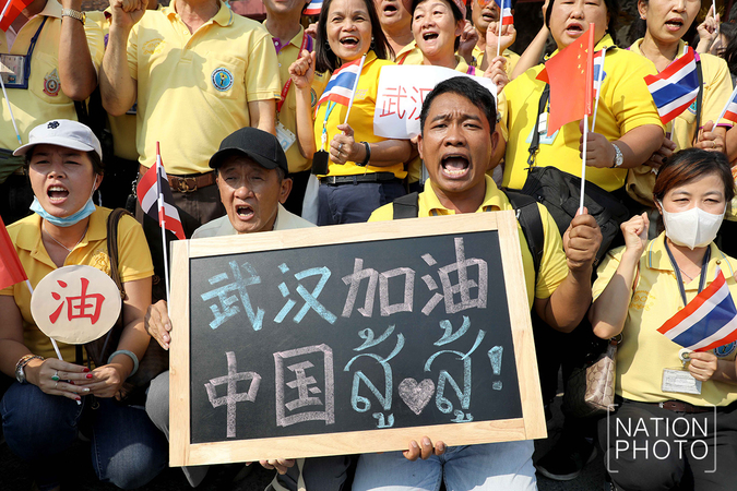 Some members of the Professional Guides Association of Thailand led by president Wirote Sitaprasertnand assembled on Friday (January 31) at 3pm at the Siam Niramit parking area, in a gesture of solidarity with the residents of Wuhan city in China, egging them on to fight the new coronavirus crisis. They raised a banner and waved the flag. They also shouted in Chinese, “Wuhan, keep fighting. China, I love you”, pledging their support for the people of Wuhan in their health crisis.