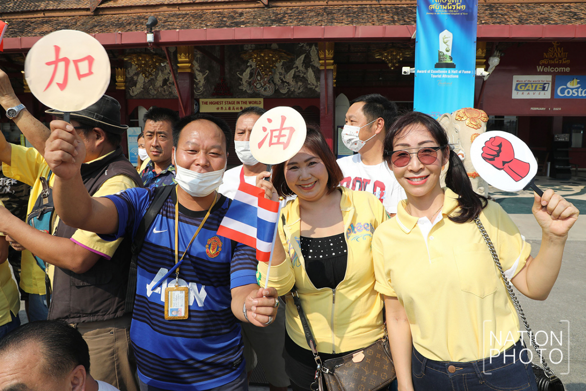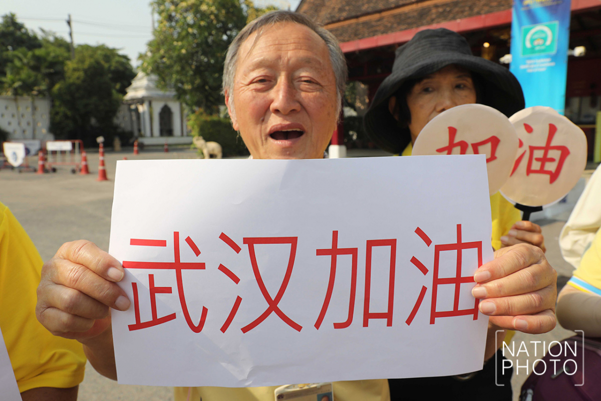 Some members of the Professional Guides Association of Thailand led by president Wirote Sitaprasertnand assembled on Friday (January 31) at 3pm at the Siam Niramit parking area, in a gesture of solidarity with the residents of Wuhan city in China, egging them on to fight the new coronavirus crisis. They raised a banner and waved the flag. They also shouted in Chinese, “Wuhan, keep fighting. China, I love you”, pledging their support for the people of Wuhan in their health crisis.