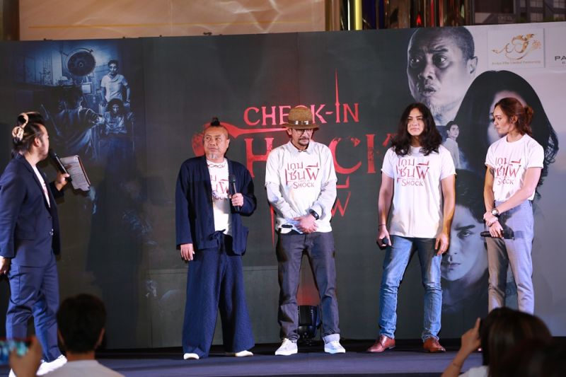 เริ่มงานด้วย เพลงประกอบภาพยนตร์ “ ภาพสุดท้าย “ จาก แจ็ค จารุพงศ์ ที่ถ่ายทอดอารมณ์ออกมาได้กินใจจริงๆ จากนั้น ทีมนักแสดงดาวรุ่งและ เน็ตไอดอลชื่อดัง ได้ขึ้นมาร่วมพูดคุยกันอย่างสนุกสนาน พร้อมทั้งเปิดโปรเจคพิเศษ “Check-in Shock ทะลุจอ ” ที่เปิดโอกาสให้แฟนภาพยนตร์ได้เข้ามามีส่วนร่วม เข้าถึงอารมณ์ ท้าทายความหลอน ลองของความเฮี้ยน ในสถานที่ถ่ายทำภาพยนตร์ “Check-in Shock เกมเซ่นผี” โดยเปิดรับสมัครในวันที่ 5-14 กุมภาพันธ์ 2563 ติดตามรายละเอียดและสมัครเข้าร่วมโปรเจคได้ที่ Facebook : major group และ Facebook : เกมเซ่นผี และปิดท้ายด้วยการสัมภาษณ์พูดคุยถึงการทำงานในภาพยนตร์ กับ แน็ก ชาลี แจ็ค จารุพงศ์ ป๋อง กพล และ รัชต์ ไกรสิงห์ ผู้กำกับภาพยนตร์ ที่มาแชร์ประสบการณ์เฮี้ยนของสถานที่ถ่ายทำที่แต่ละคนเจอมา เล่นเอาขนลุกกันทั้งงานเลยทีเดียวสำหรับภาพยนตร์ “Check-in Shock เกมเซ่นผี” มีกำหนดเข้าฉายในวันที่ 19 มีนาคมนี้ ในโรงภาพยนตร์ทั่วประเทศ ..ท้าทายความหลอน ลองของความเฮี้ยน ร้องเรียกความตาย