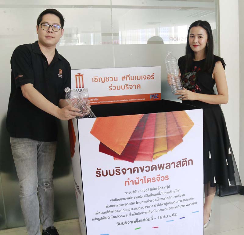 ล่าสุด เมเจอร์ ซีนีเพล็กซ์ กรุ้ป เดินหน้าสานต่อร่วมรักษ์โลกจากการรณรงค์แยกประเภทขยะ…สู่การเปลี่ยนขยะจากการแยกประเภทจากขวดพลาสติก และขอรับบริจาคขวดพลาสติกเหลือใช้จากพนักงาน และนำไปบริจาคให้กับวัดจากแดง จ.สมุทรปราการ จำนวน 60 กิโลกรัม เพื่อนำเข้าสู่กระบวนการแปรรูปขวดพลาสติกเป็นจีวรพระ ซึ่งขวดพลาสติกขนาด 1.5 ลิตร จำนวน 15 ใบ หรือขนาด 550 มิลลิลิตร จำนวน 30 ใบ สามารถนำไปแปรรูปเป็นจีวรพระได้ 1 ผืน ถือเป็นหนึ่งช่องทางในการลดขยะและเป็นการทำบุญลดโลกร้อนได้อีกด้วย ทั้งนี้ เมเจอร์ซีนีเพล็กซ์ กรุ้ป ตั้งเป้าหมายจะบริจาคขวดพลาสติก โดยจะจัดส่งให้กับทางวัดจากแดง อำเภอพระประแดงสมุทรปราการ ทุก 2 เดือนอย่างต่อเนื่อง