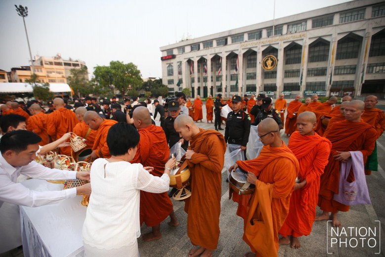 BMA officials offer alms to monks on Makha Bucha Day