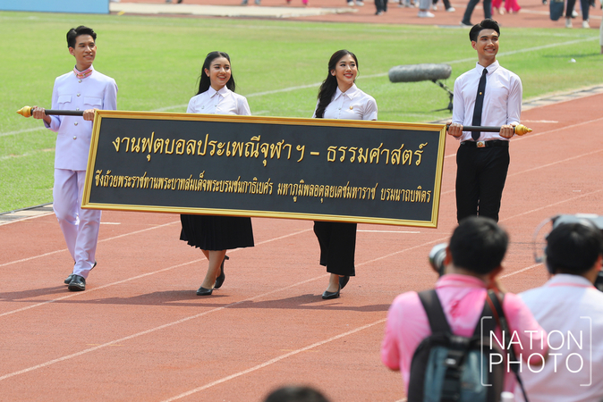 Thammasat students raised through the use of satire the issue of outstanding political cases, such as Ratchaburi member of Parliament Pareena Kraikup’s alleged land encroachment in a reserved forest area, the Run Against Dictatorship, transparency issues of the government and the controversial Article 44 of the Constitution.