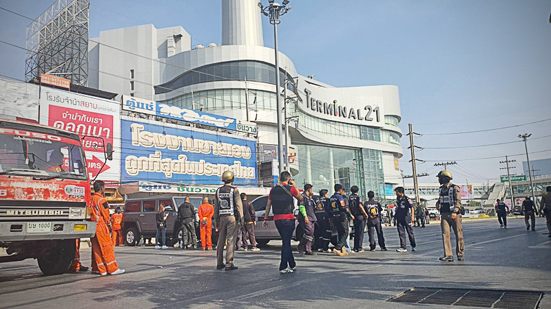 An EOD bomb disposal unit rushed to Terminal 21 in Nakhon Ratchasima, the scene of a recent mass shooting incident, after police were notified that a “bomb” was found on the underground floor today (February 11).