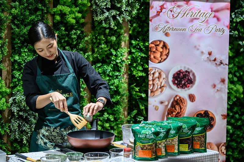 งานจิบชายามบ่ายในครั้งนี้เผยให้เห็นว่าทำไมถั่วและผลไม้อบแห้งของเครือเฮอริเทจที่มีที่มาจากสหรัฐอเมริกาจึงกลายเป็นส่วนหนึ่งของอาหารดั้งเดิมของไทยและส่วนประกอบที่สำคัญของเมนูอาหารเพื่อสุขภาพ เหตุผลที่สำคัญเกี่ยวเนื่องกับคุณภาพระดับสูงของผลิตภัณฑ์ ด้วยกระบวนการผลิตและจัดจำหน่ายผลิตภัณฑ์ในประเทศไทยตามมาตรฐานคุณภาพสากลของเครือเฮอริเทจ ทำให้ผลิตภัณฑ์จากกสหรัฐอเมริกาเหล่านี้กลายเป็นองค์ประกอบสำคัญที่สุดของมื้ออาหารในประเทศไทย